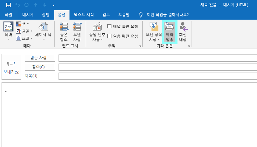 STEP 04_ [옵션] 탭의 [기타 옵션] 필드에 있는 [예약 발송] 버튼을 누릅니다.