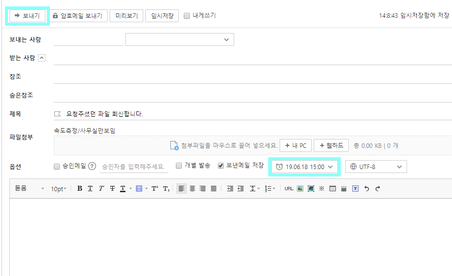내용 작성을 끝내면 [보내기(S)] 버튼을 클릭해 발송합니다.