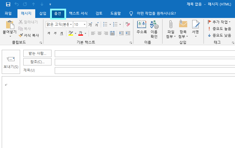 STEP 03_ 작성창이 오픈되면 [옵션] 탭을 클릭합니다.