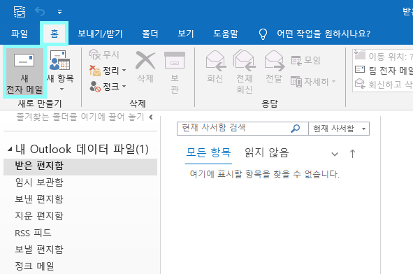 STEP 02_ [홈] 탭에서 [새 전자메일] 에 진입합니다.