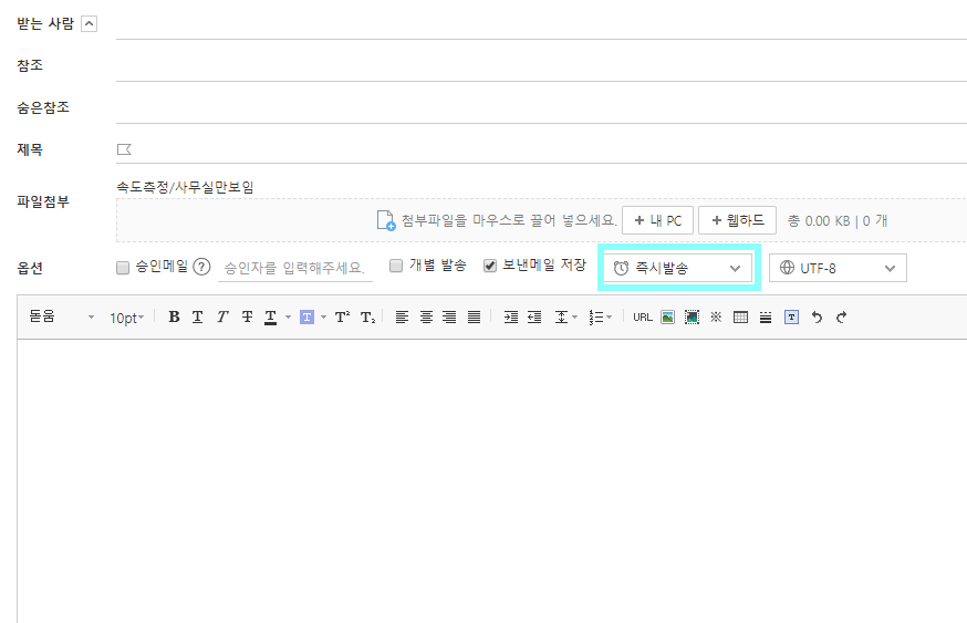기본 설정값은 ‘즉시발송’으로 돼있습니다.