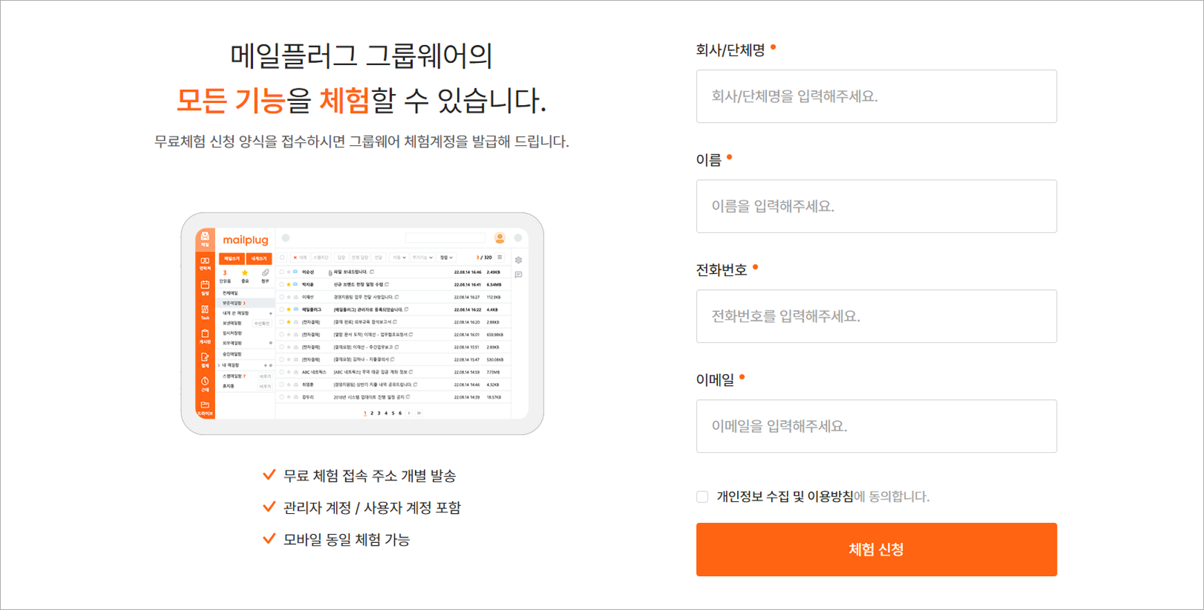 메일플러그 그룹웨어도 무료 체험을 신청하면