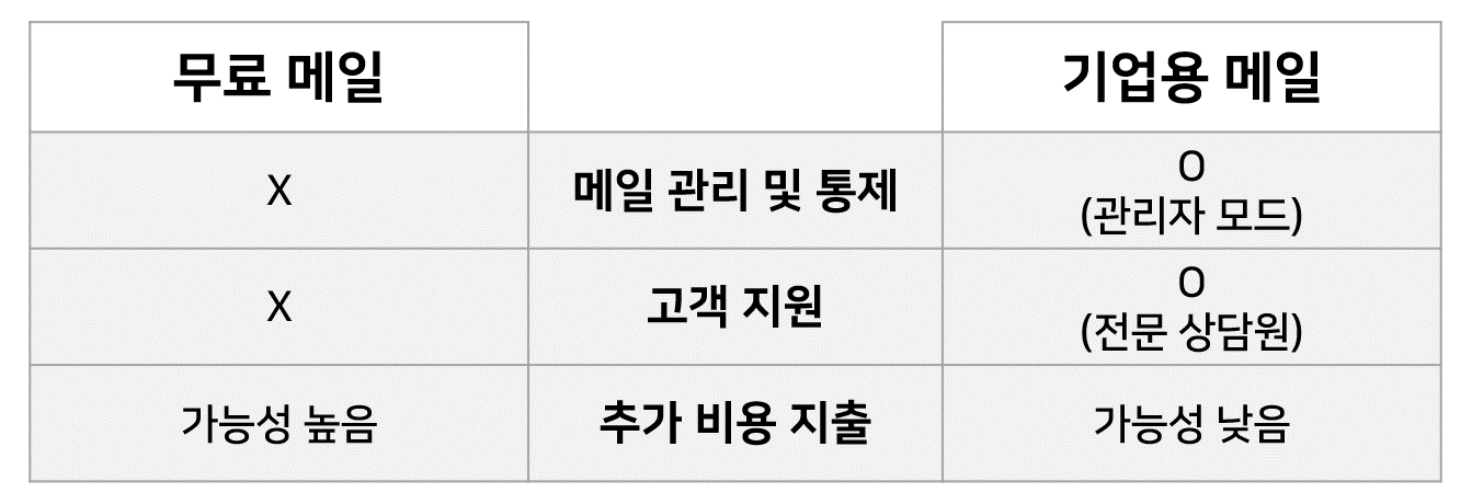 따라서, 지금부터 무료 기업메일과 유료 기업메일의 장단점을 비교해드리려고 합니다.