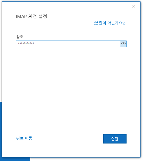 ④ 웹메일 비밀번호를 입력한 후 [연결] 버튼을 눌러 설정을 완료합니다.