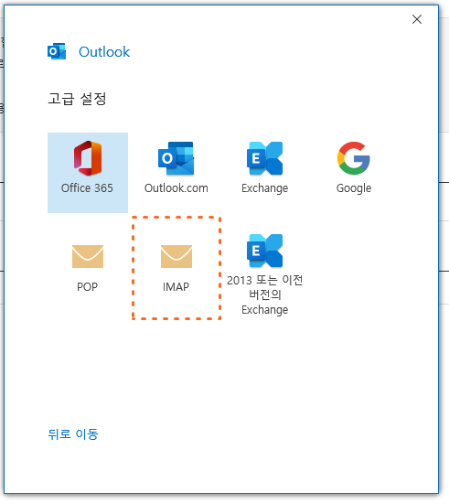 아웃룩 계정을 IMAP으로 설정해주면 됩니다.