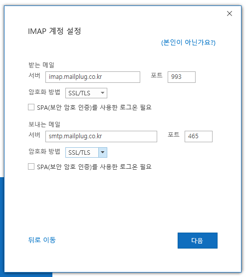 -▷ 받는 메일 서버 : imap.mailplug.co.kr