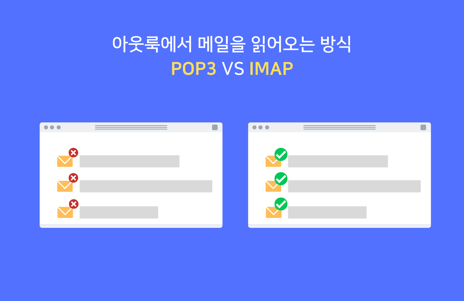 아웃룩 계정 설정을 하다 보면 POP3, IMAP이라는 단어를 보신 적이 있으실 텐데요.