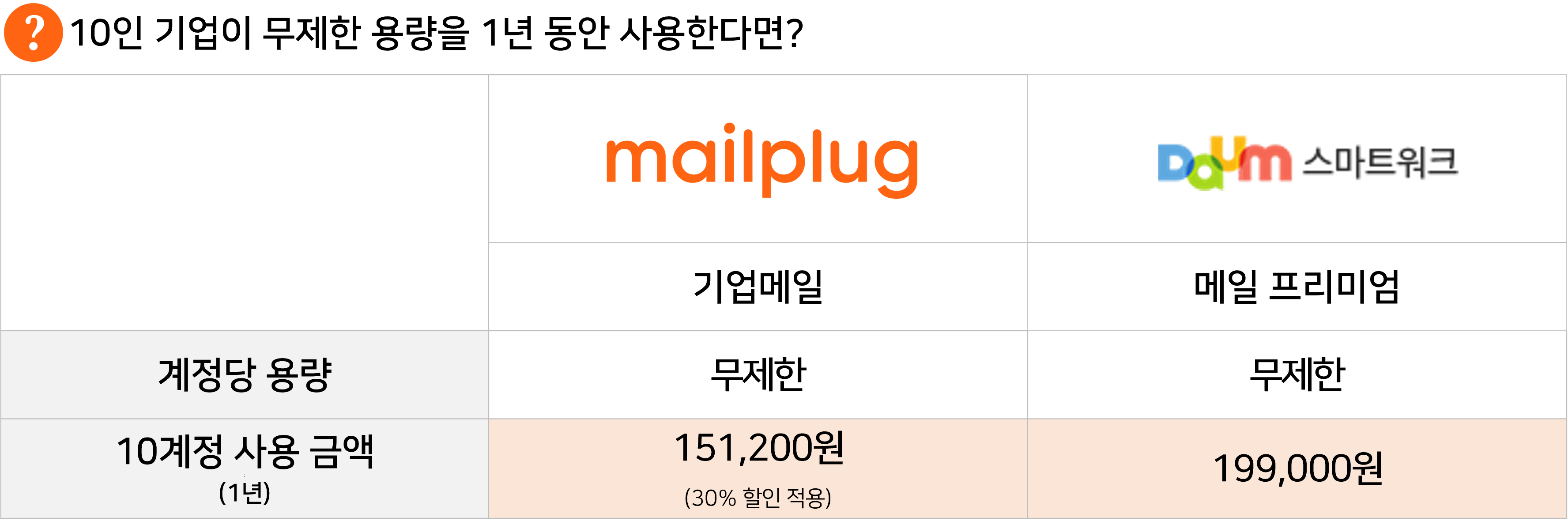 10인 기업이 무제한 용량을 1년간 사용했을 때