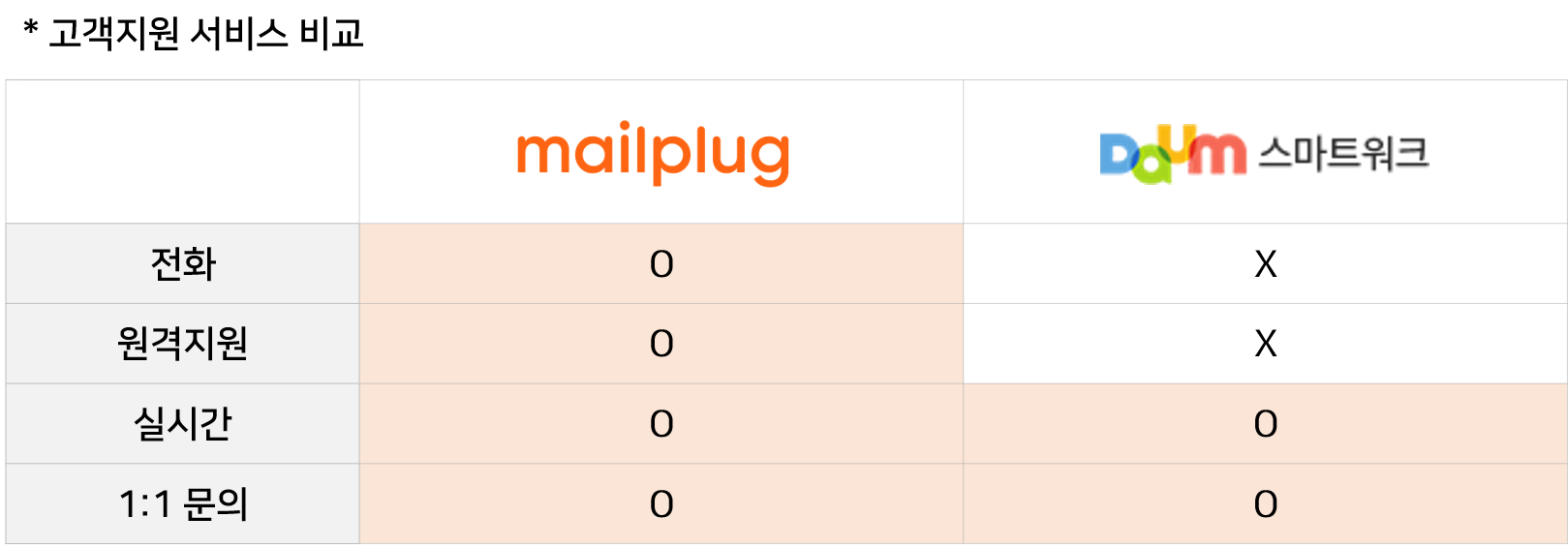 반면, 메일플러그에서는 전화와 원격지원까지 제공해
