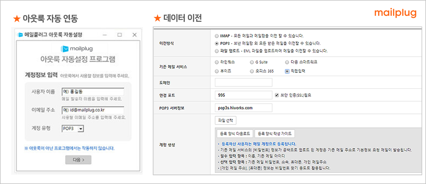 아웃룩 연동 및 데이터 이전까지 편리하게 이용하려면,