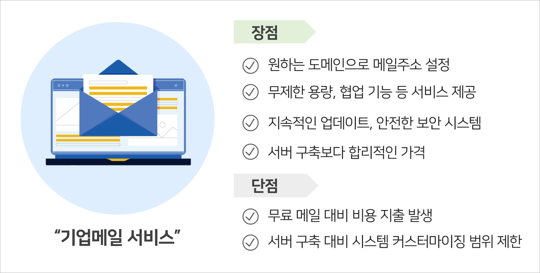 오늘은 기업 메일 만들기, 3가지 방법의 장단점을 살펴보았는데요.