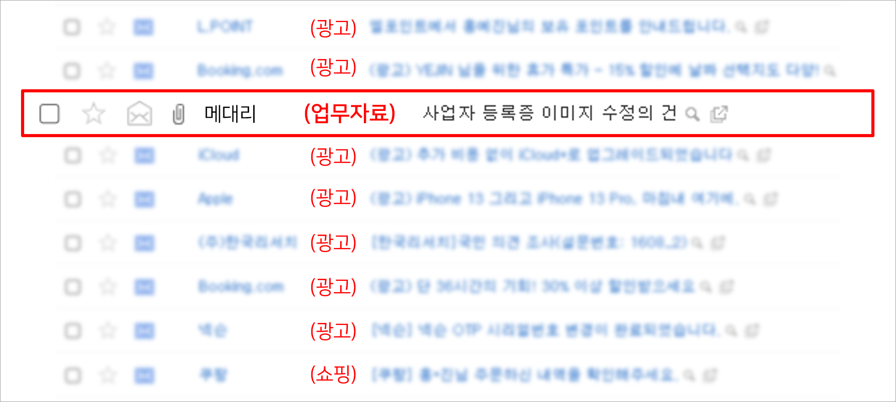 쇼핑 내역이나 뉴스레터와 같은 개인적인 내용과
