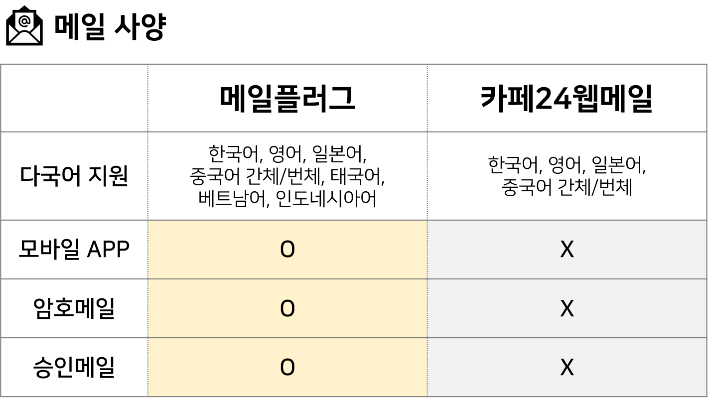 카페24웹메일과 메일플러그를 비교해보겠습니다.