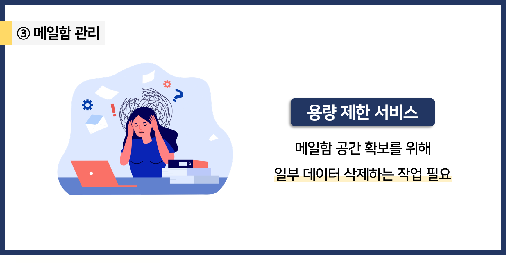 공간 확보를 위해 메일을 삭제하지 않아도 되기 때문이죠.