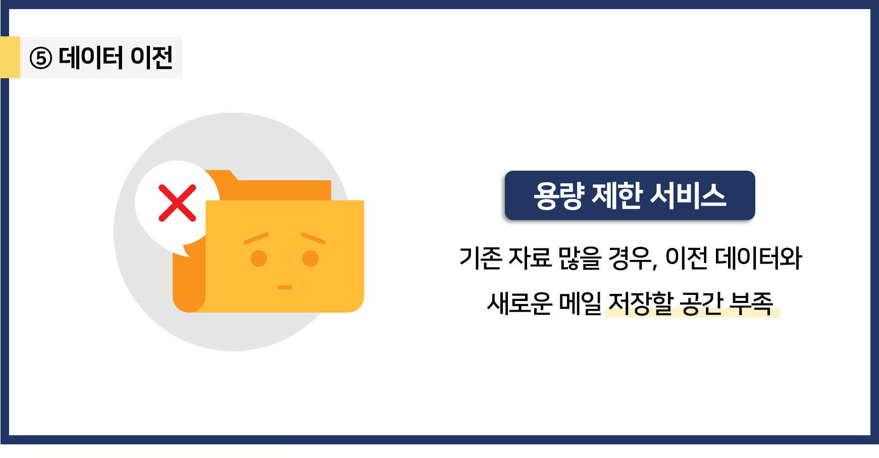 이전 데이터를 옮기지 못할뿐더러 새로운 이메일조차 저장할 수 없겠죠.