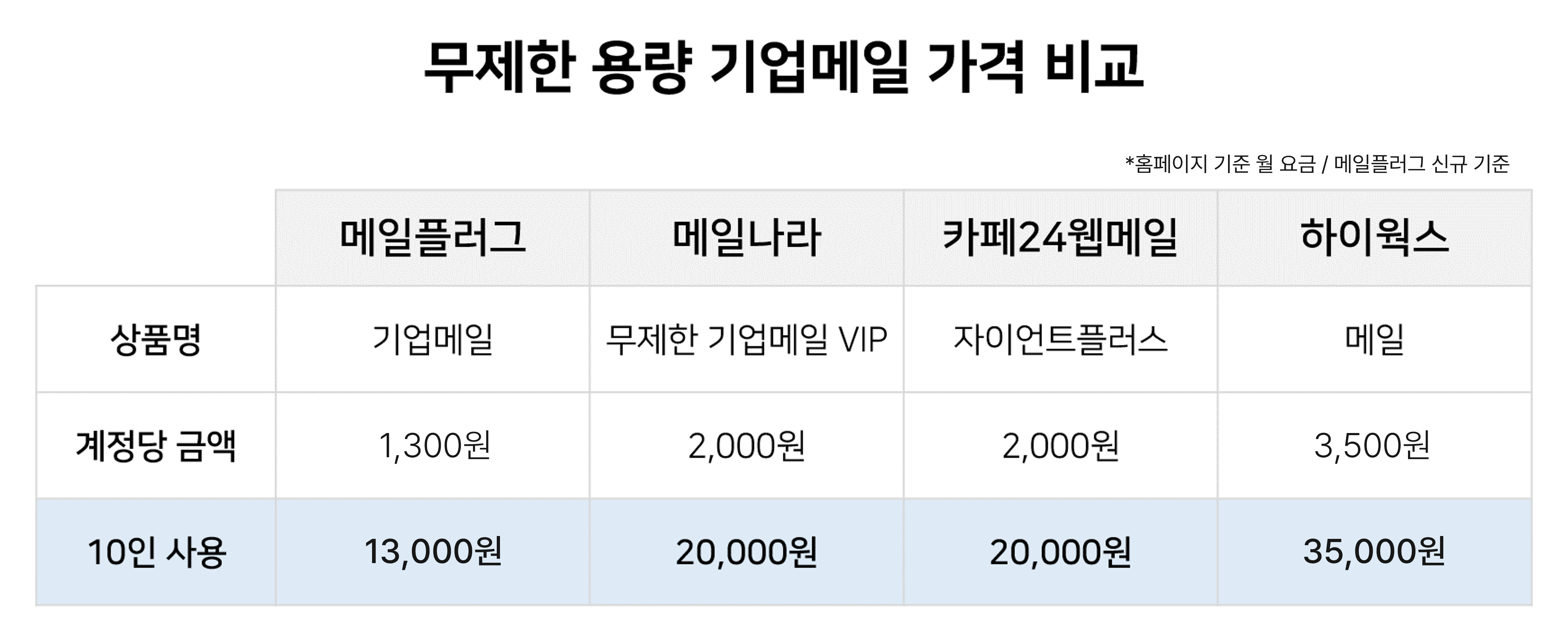 무제한 기업메일의 가격부터 살펴보겠습니다.