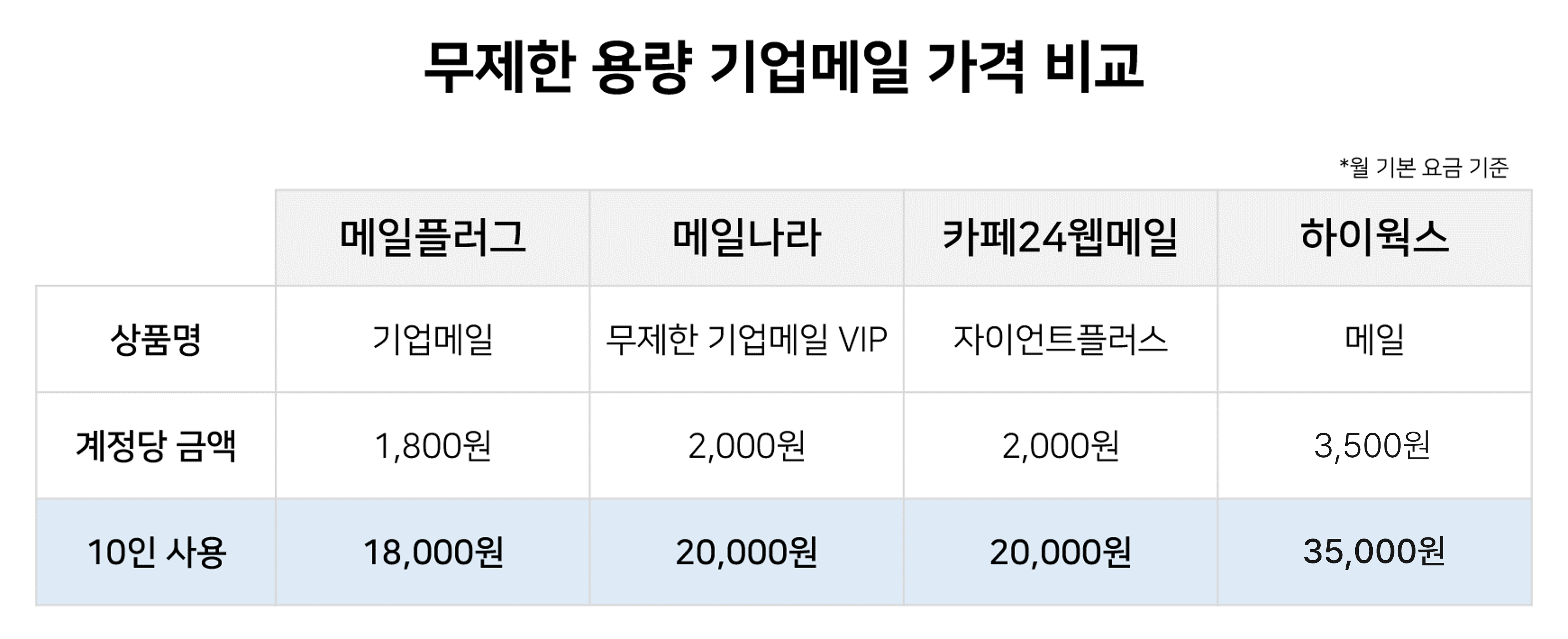 무제한 용량 기업메일이 가장 저렴한 곳은