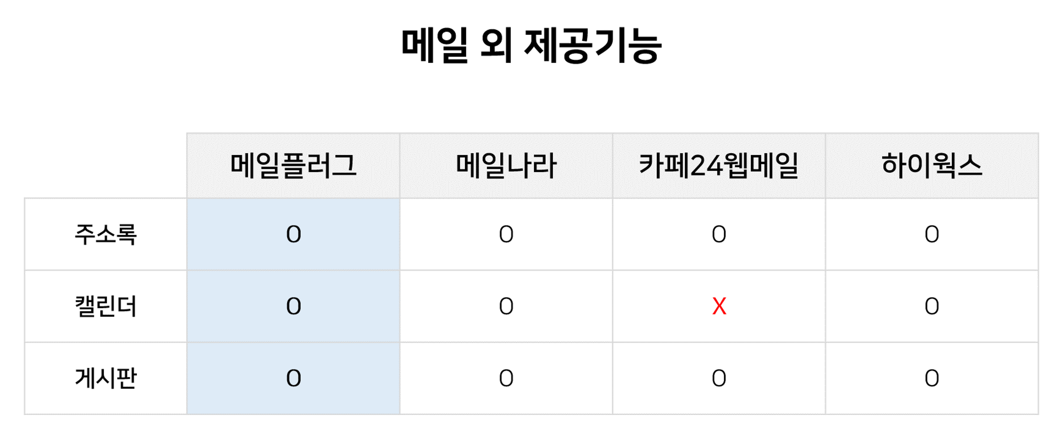 메일 외 기능을 기본으로 제공하는지 여부입니다.