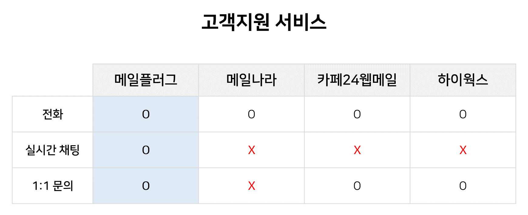 그중에서도 무제한 용량 메일을 비교해봤습니다.
