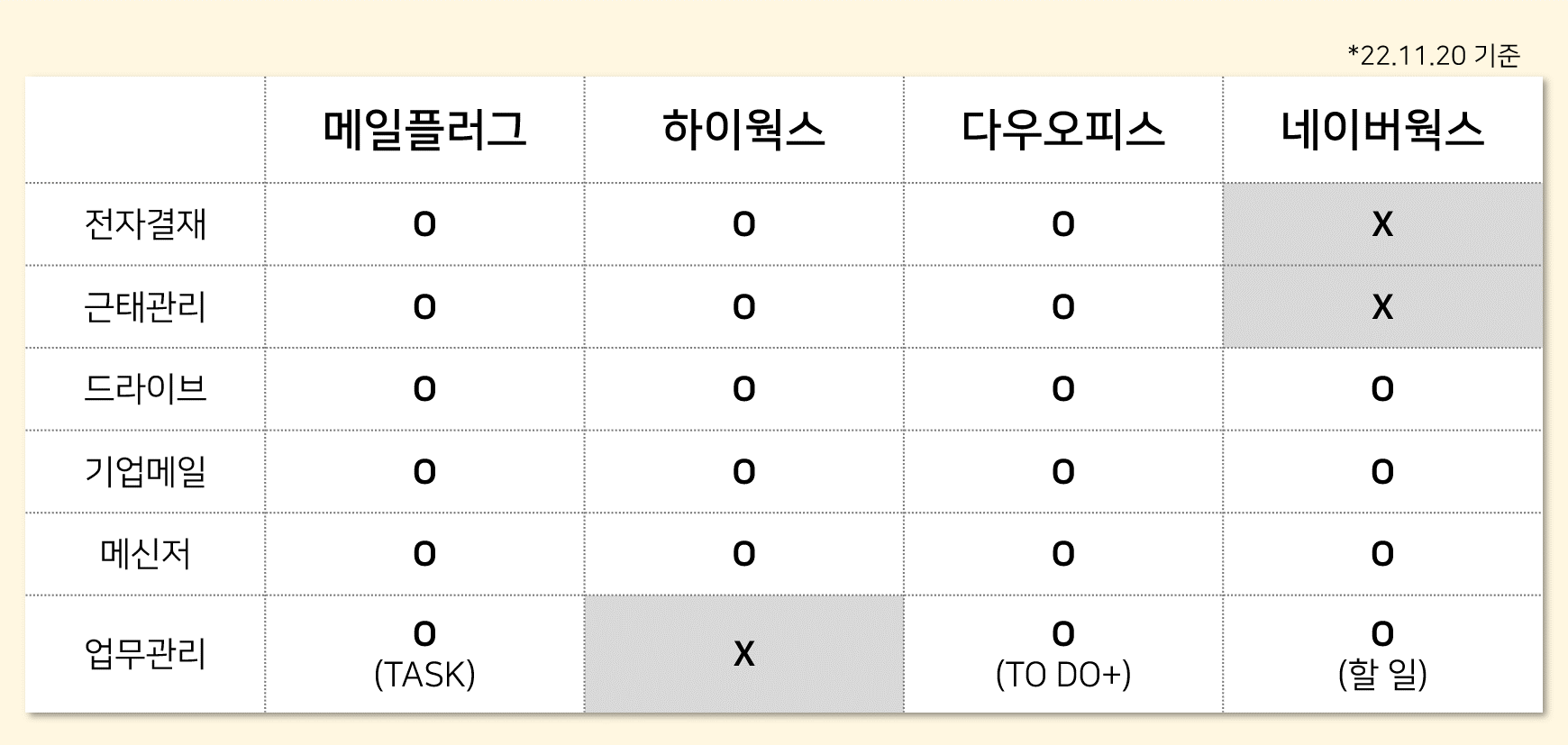 하지만 그룹웨어 서비스 요금이 비싼 편이고,