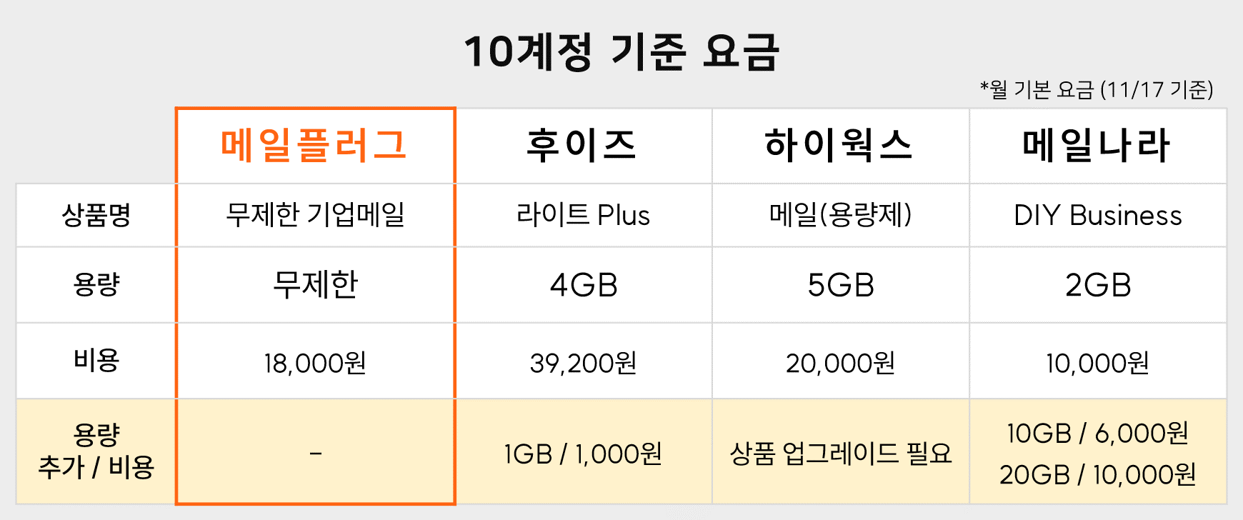 합리적인 기업메일 상품을 선택하시는 게 좋겠죠?
