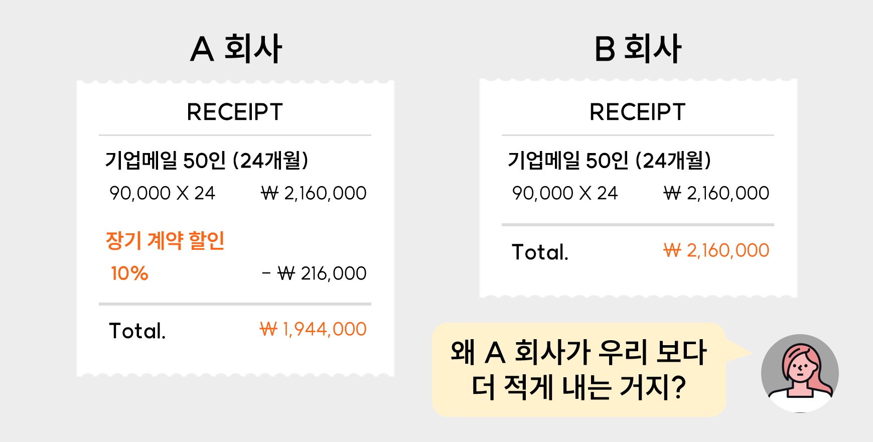 반면, 클라우드형 기업메일은 합리적인 비용으로