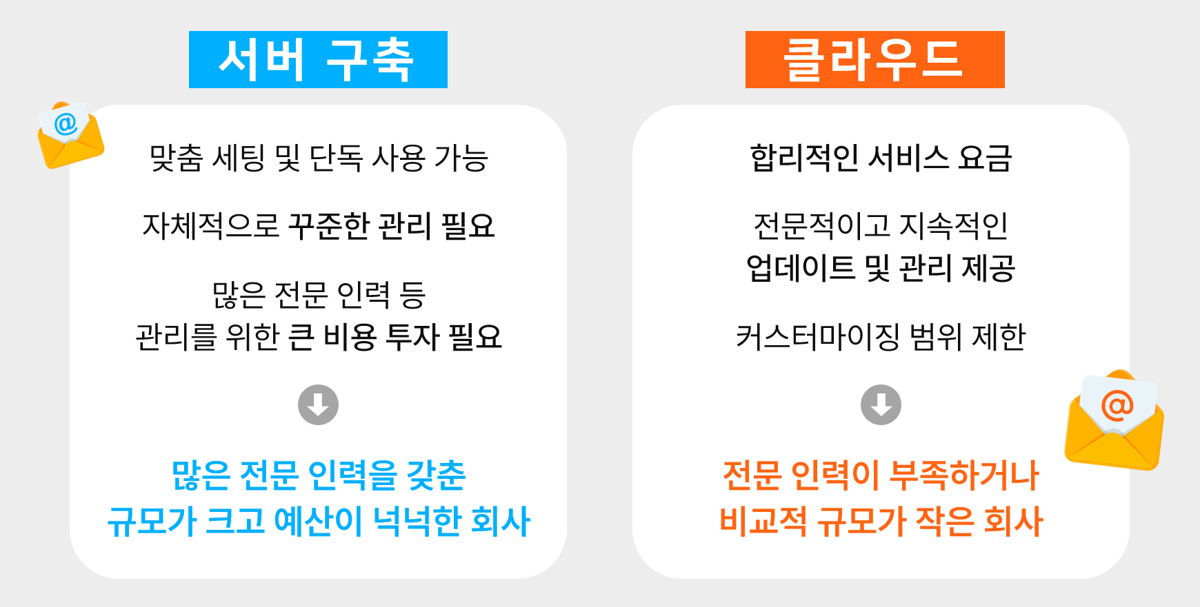 반면, 클라우드형 기업메일은 합리적인 비용으로