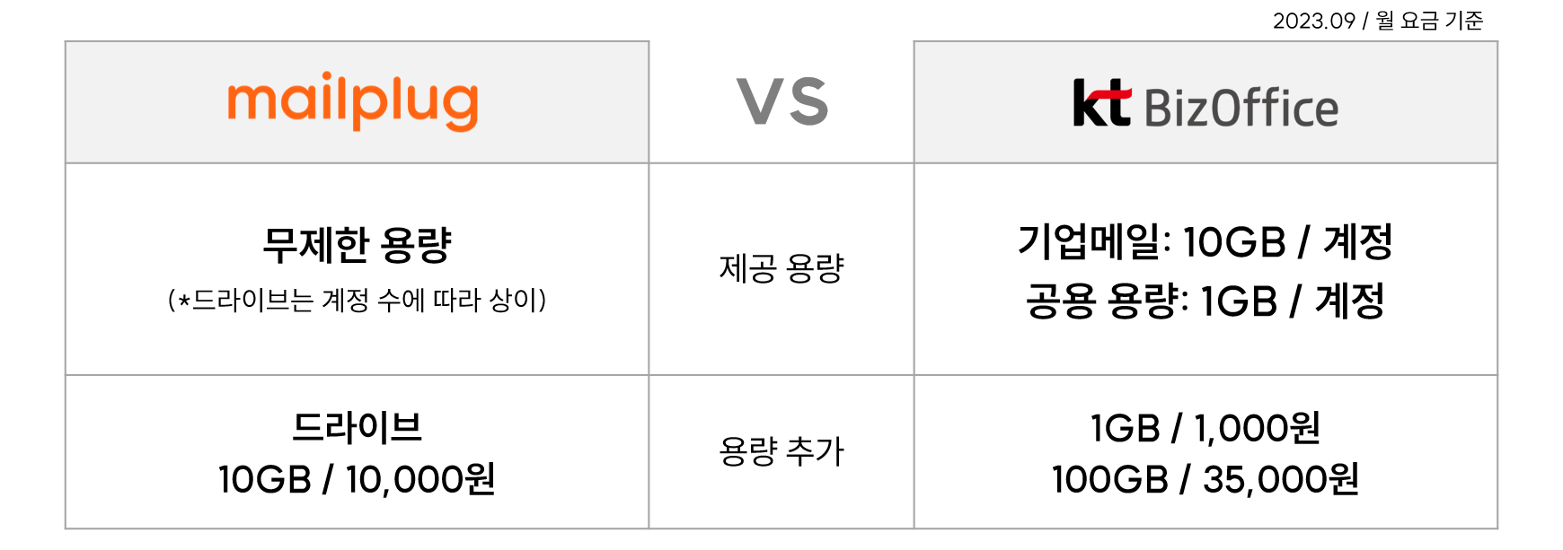 따라서 서비스 가격뿐만 아니라 용량도