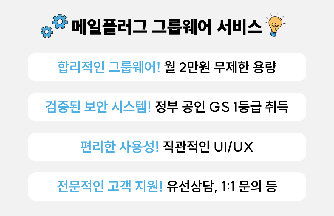 메일플러그 12만원 / KT 비즈오피스 70만원으로