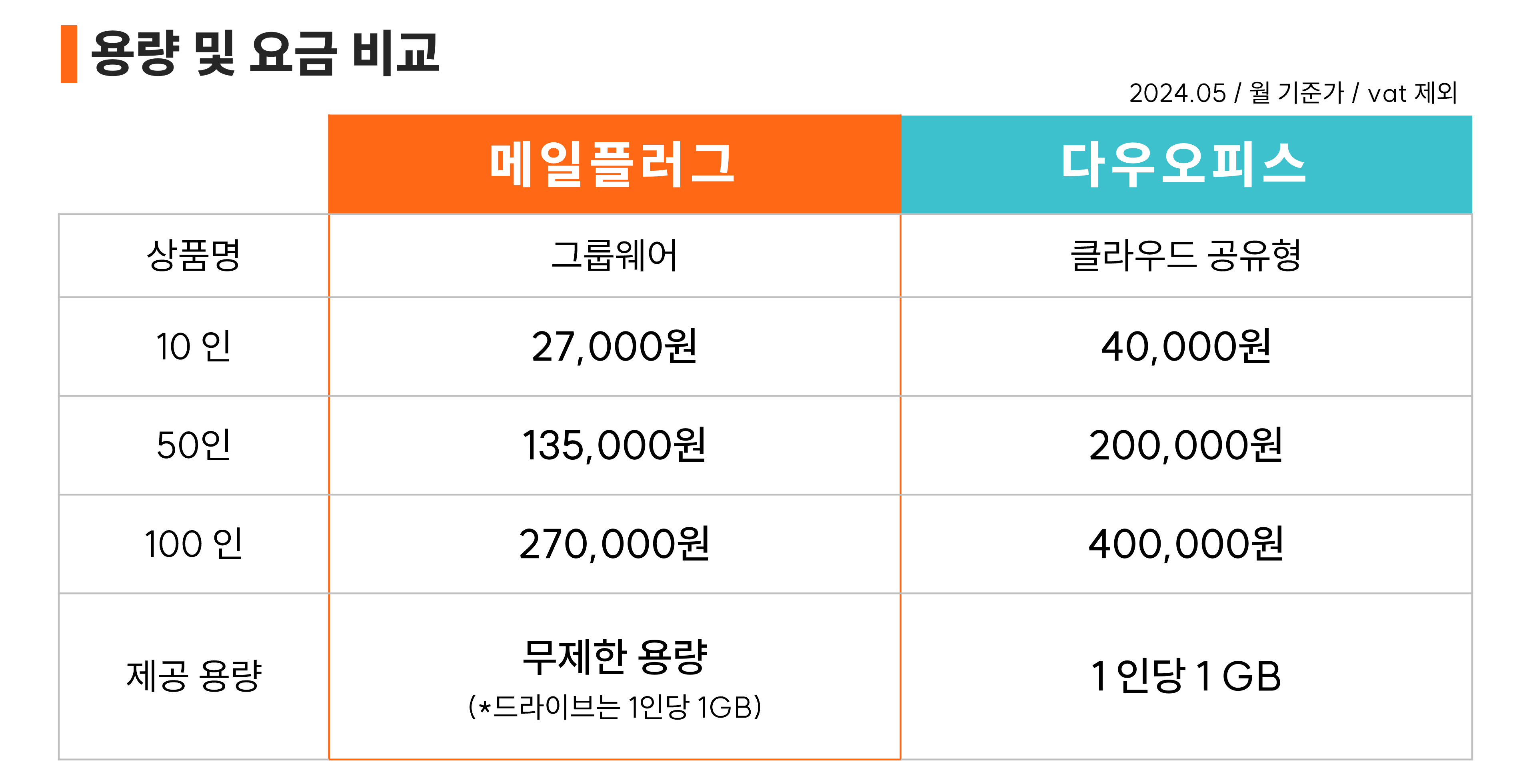 다우오피스와 메일플러그를 비교해 보겠습니다!