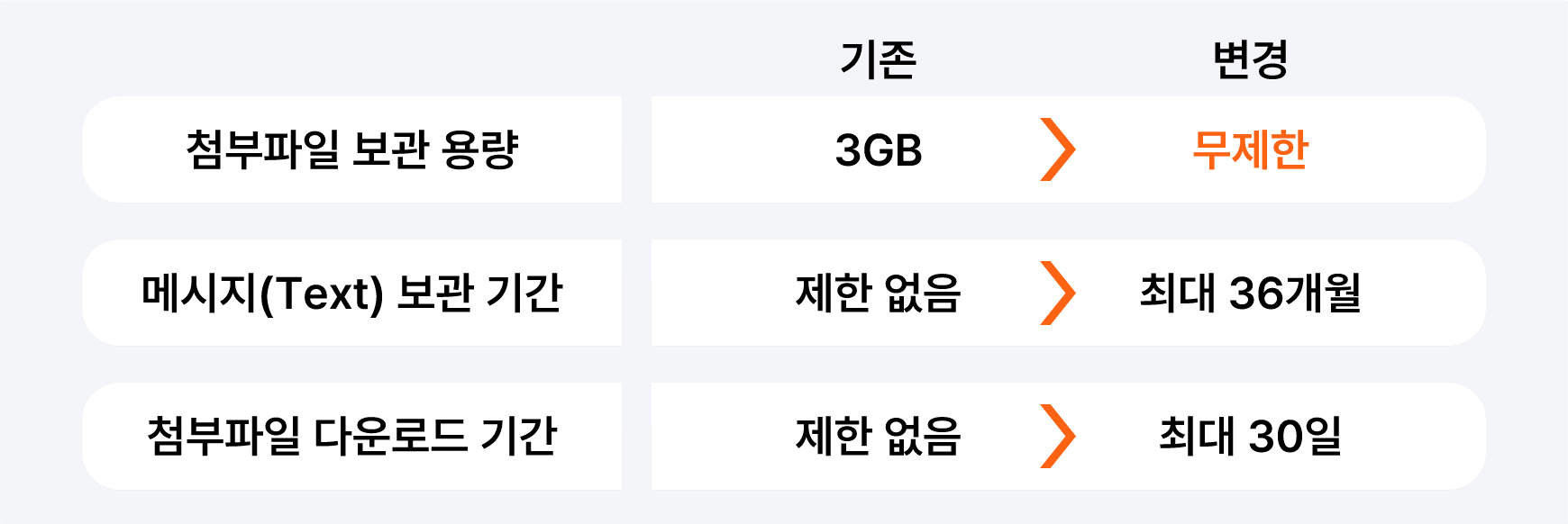 첨부파일 보관 용량이 무제한으로 변경되었는데요.