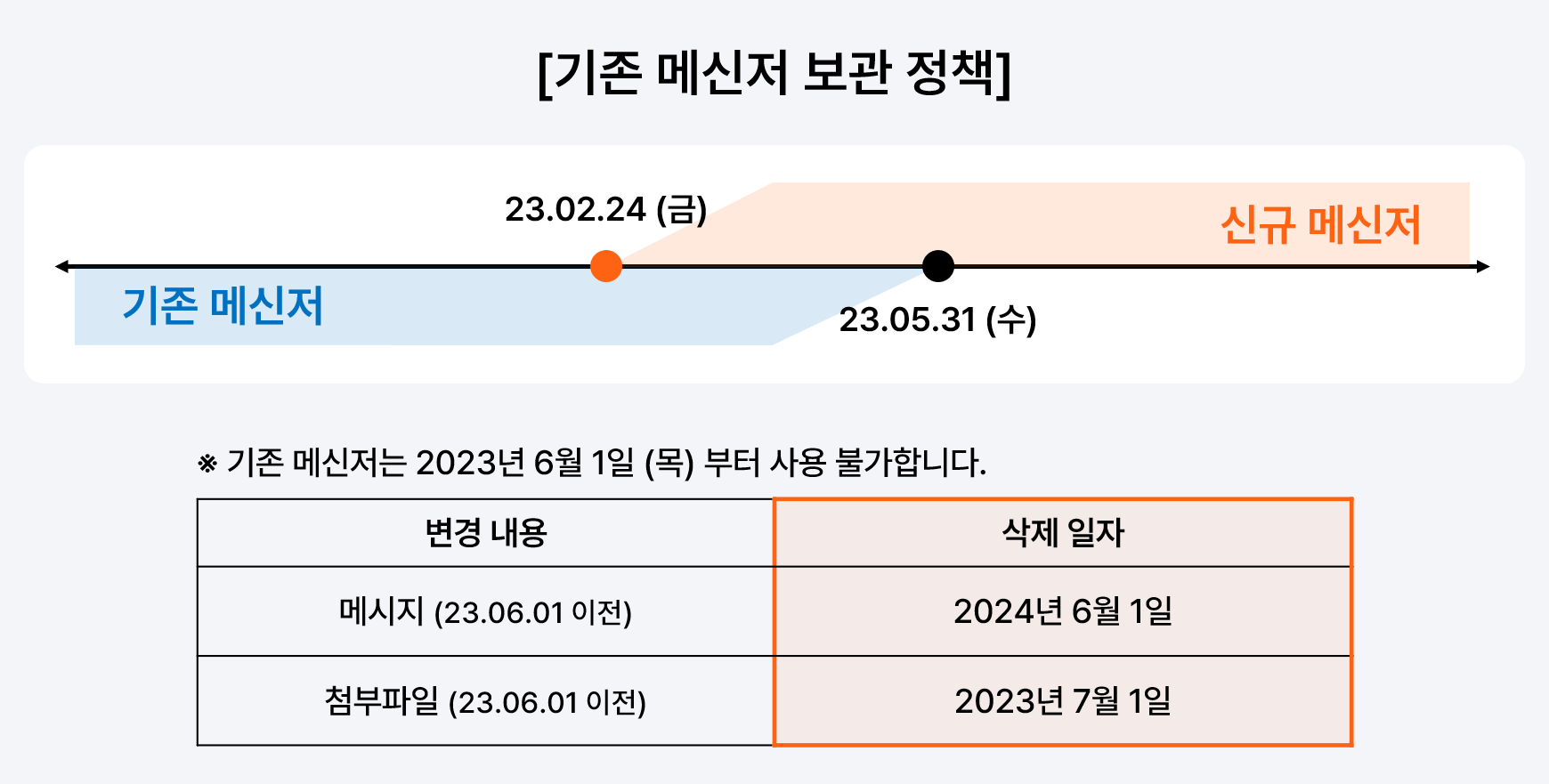 기존 업무용 메신저는 약 3개월의 병행 기간을 가진 후,