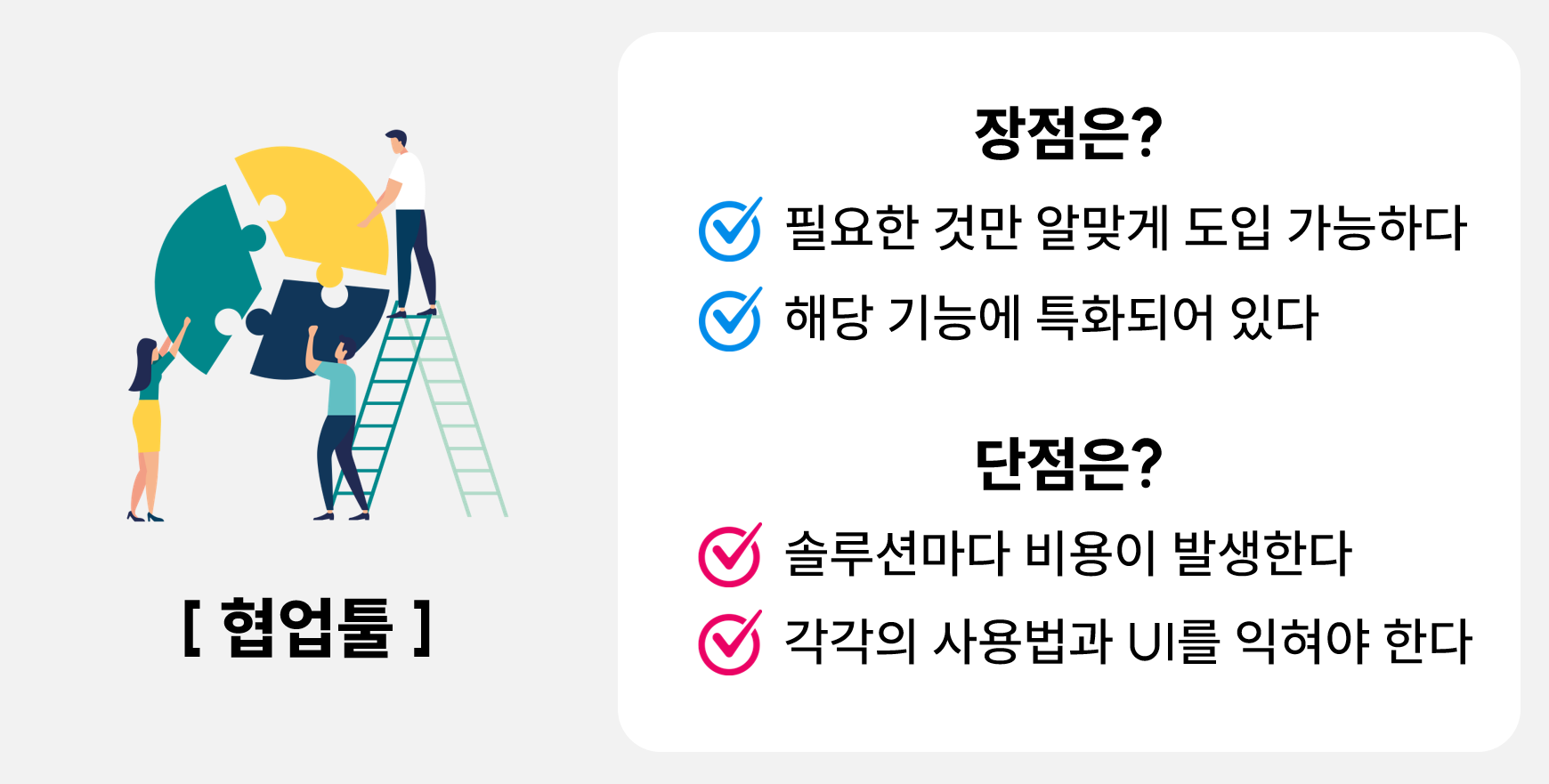 또한 협업툴마다 따로 관리해야 하기 때문에 어려움이 있을 수 있는데요.