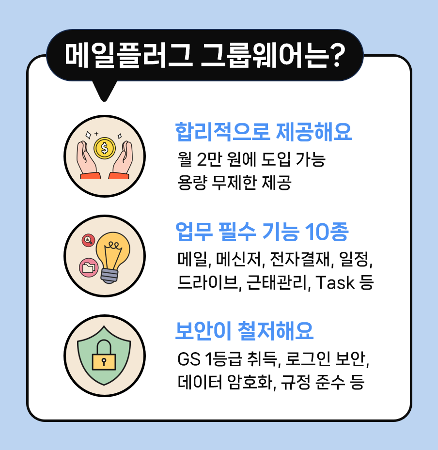 또한, 특별히 메일플러그 그룹웨어를 추천드리는데요.