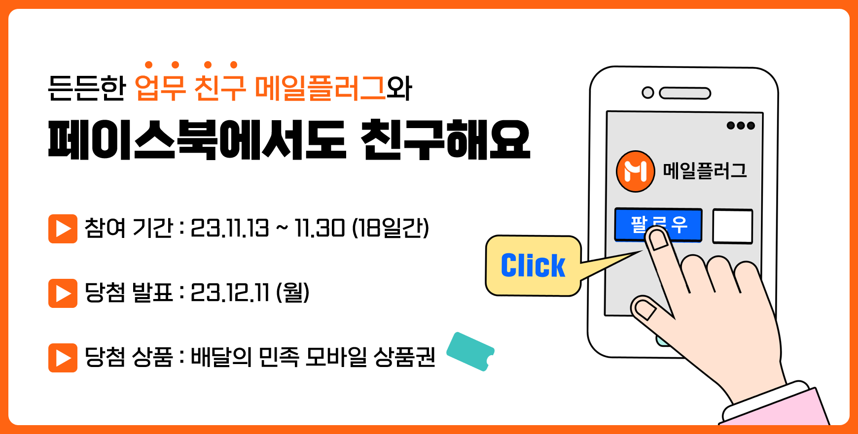'메일플러그 페이스북 팔로우 이벤트'입니다!