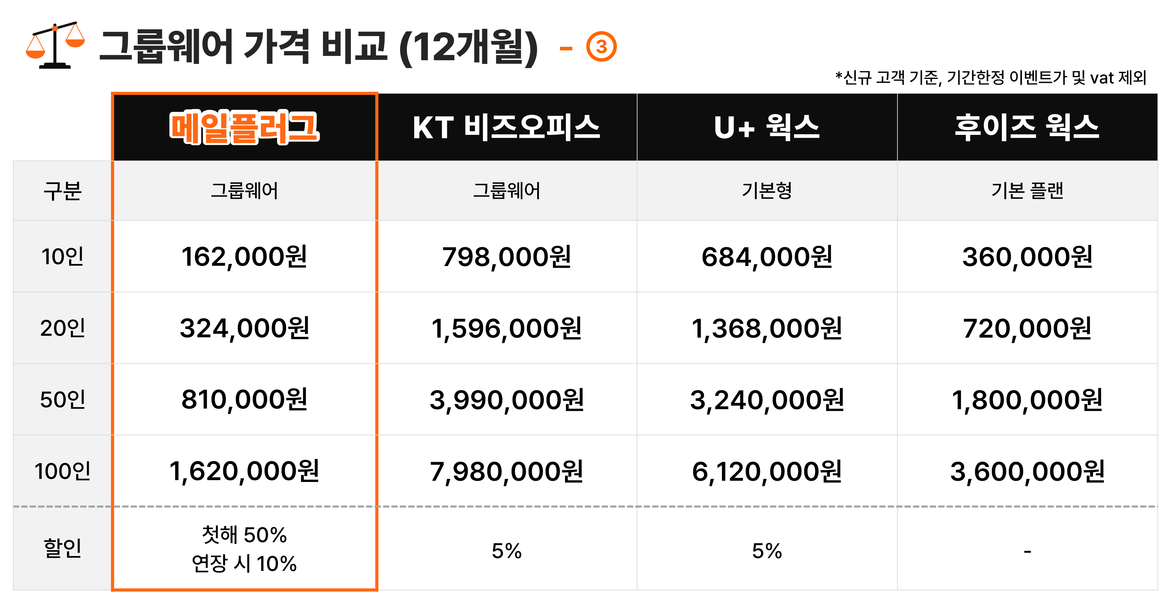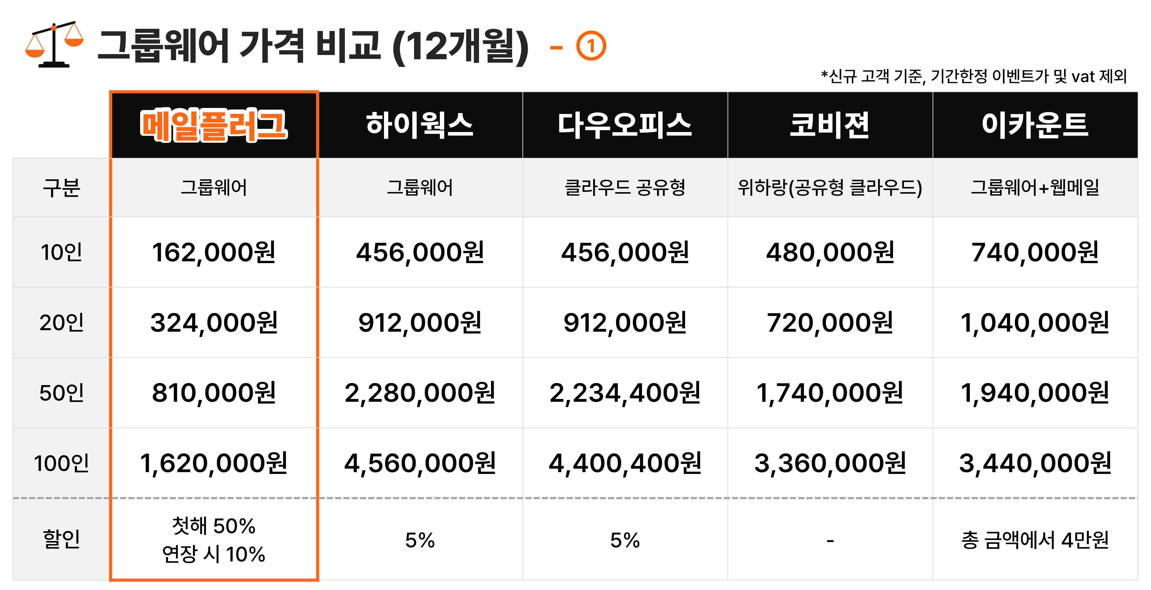 따라서 합리적인 그룹웨어를 원한다면 메일플러그가 가장 적합하겠죠?