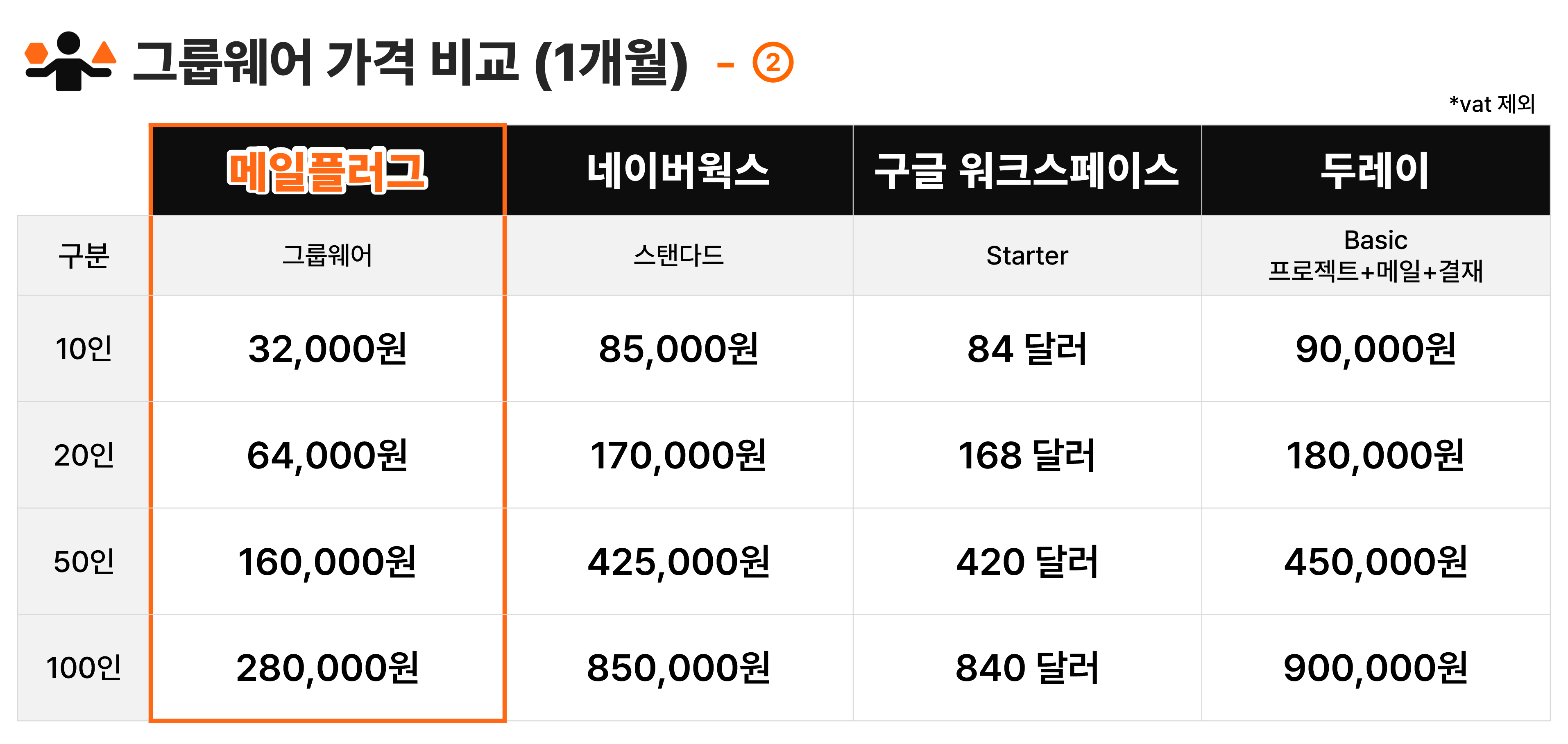 따라서 합리적인 그룹웨어를 원한다면 메일플러그가 가장 적합하겠죠?