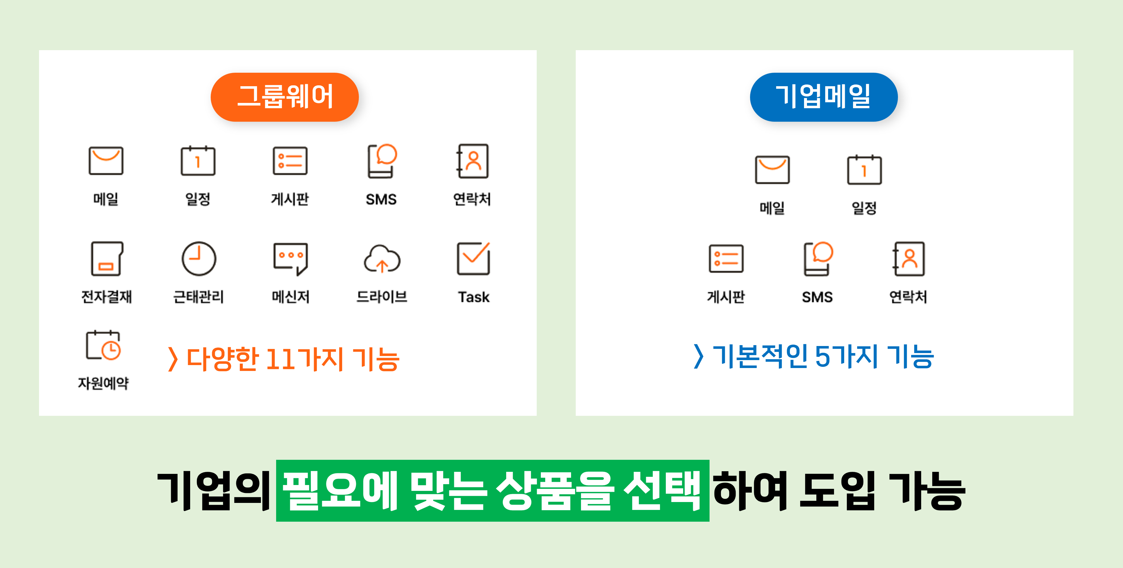 그룹웨어/기업메일 2가지로 상품이 구분되어 있는데요.
