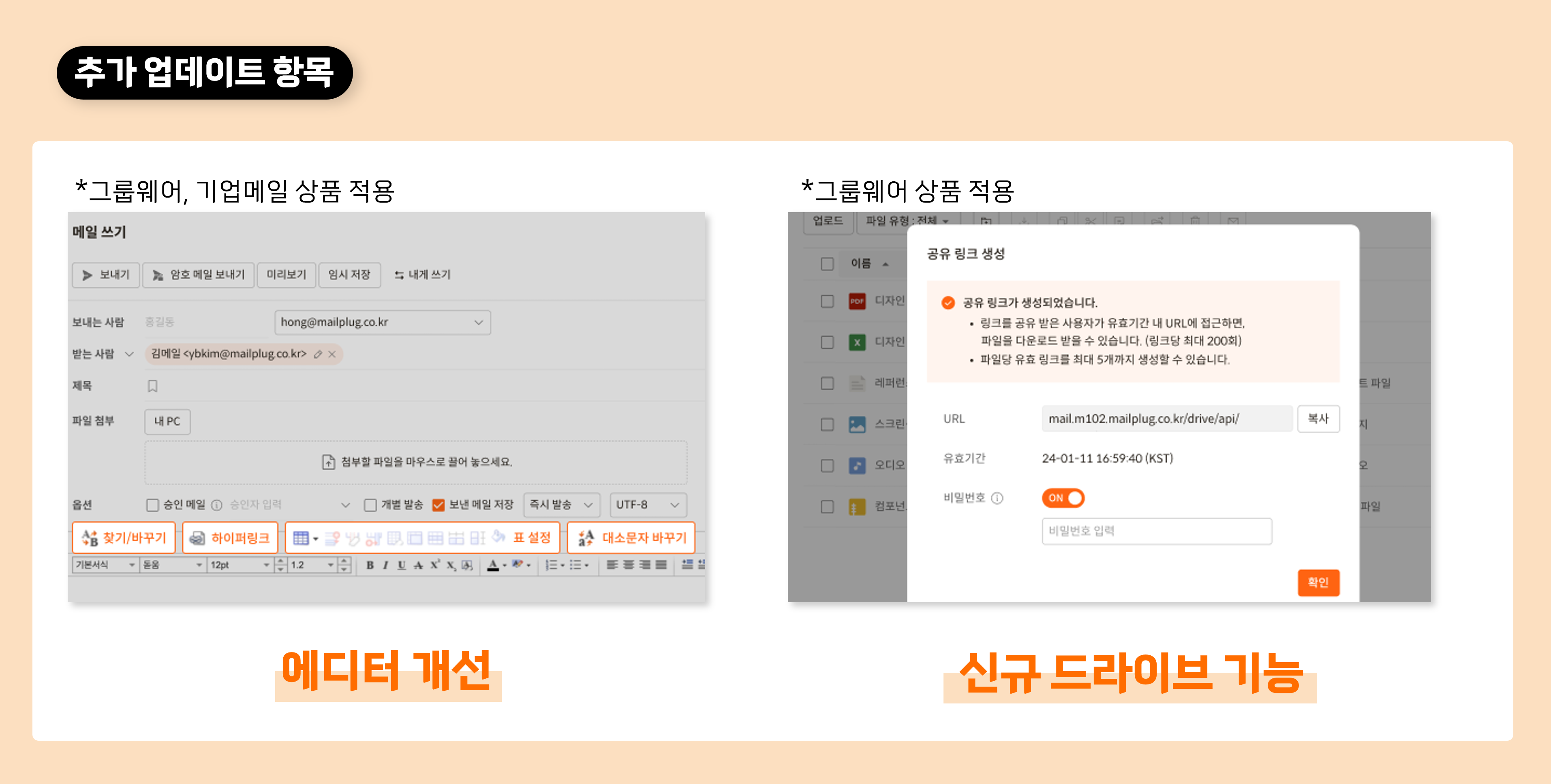 | [메일플러그] 그룹웨어 및 기업메일, 서비스 이전 고객을 위한 특별한 혜택 (0) | 2024.02.22 |