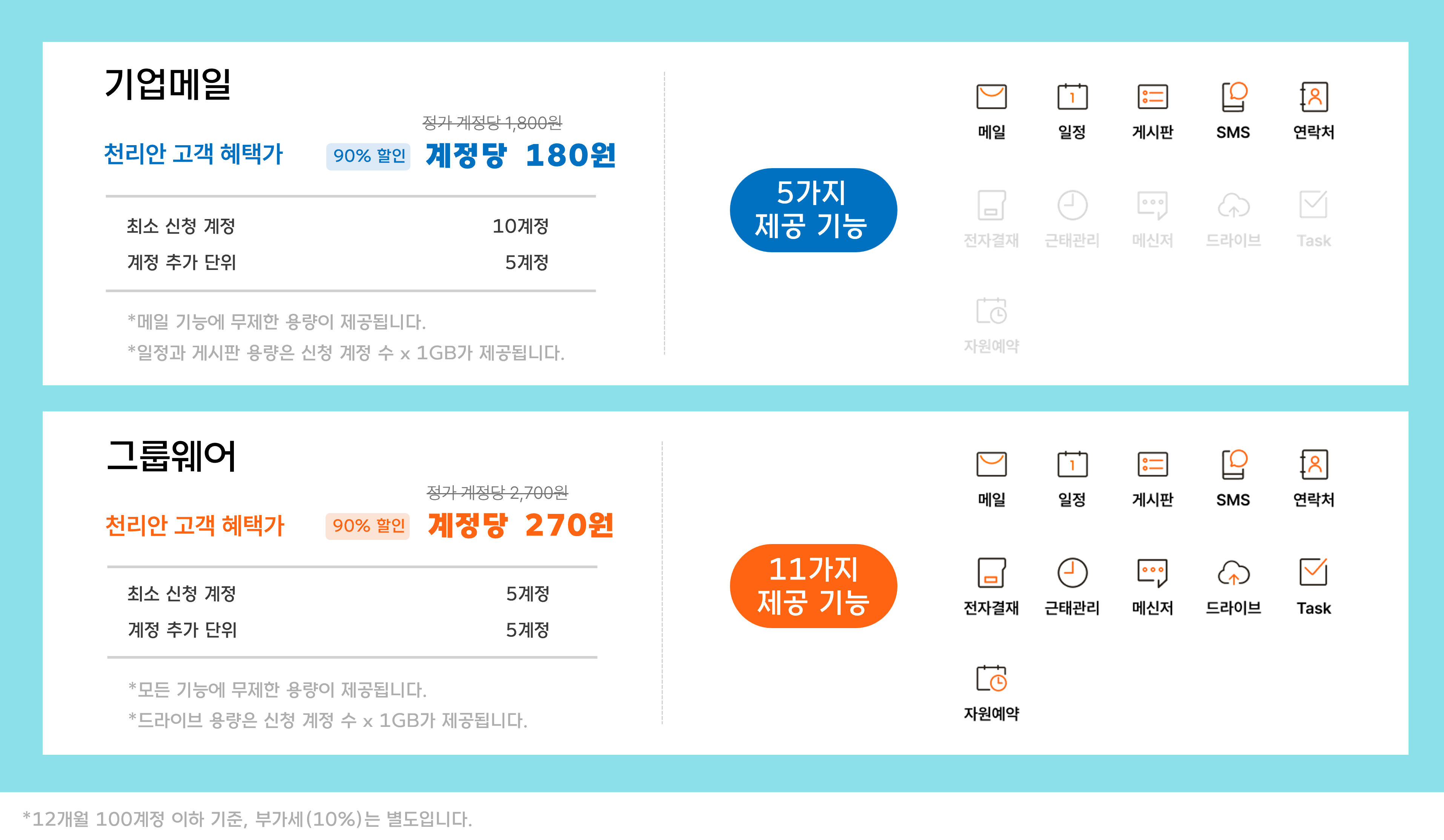 할인 적용 시 기업메일은 계정당 180원