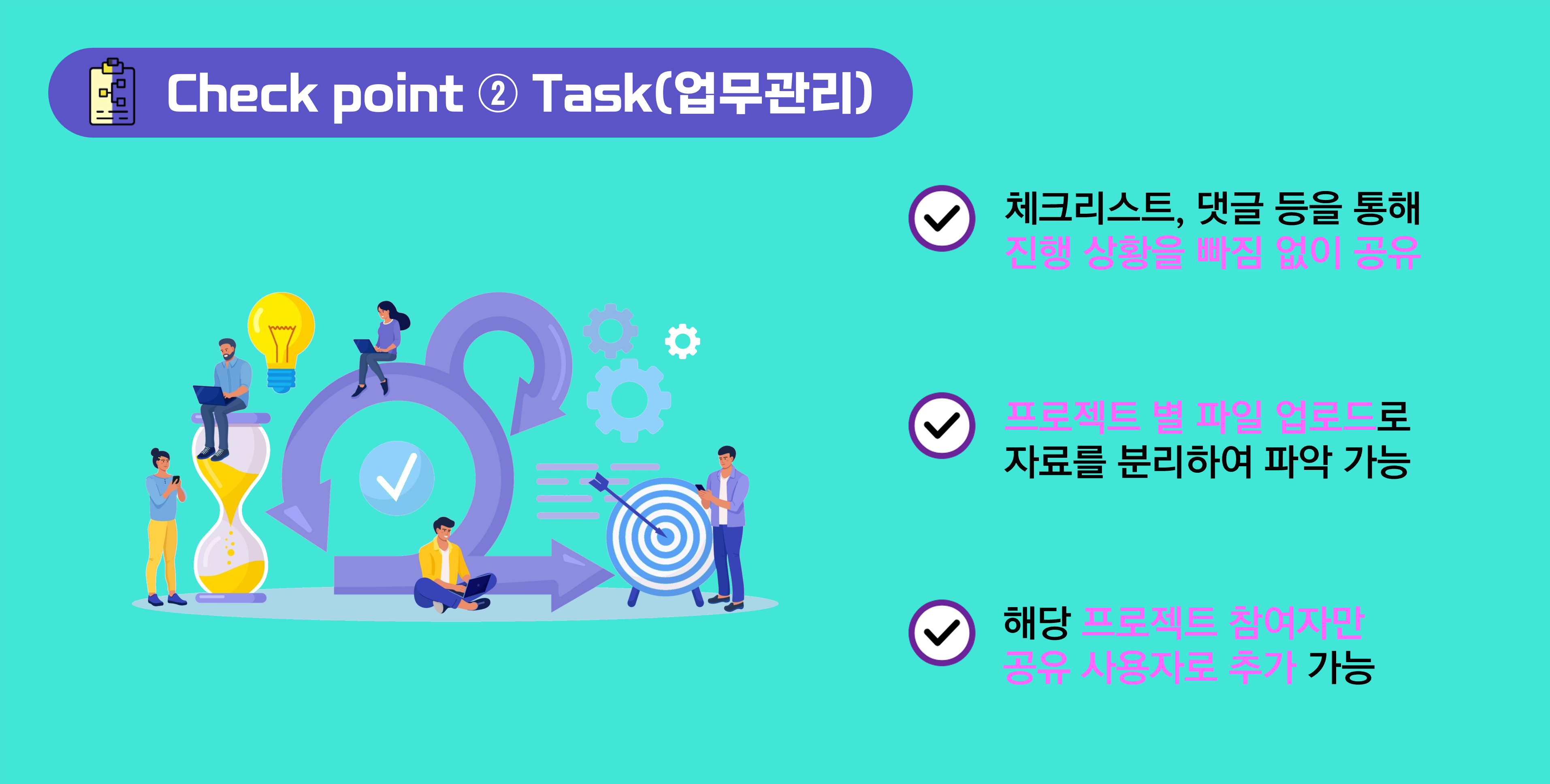 프로젝트 팀원들과의 빠른 업무 공유가 가능합니다.