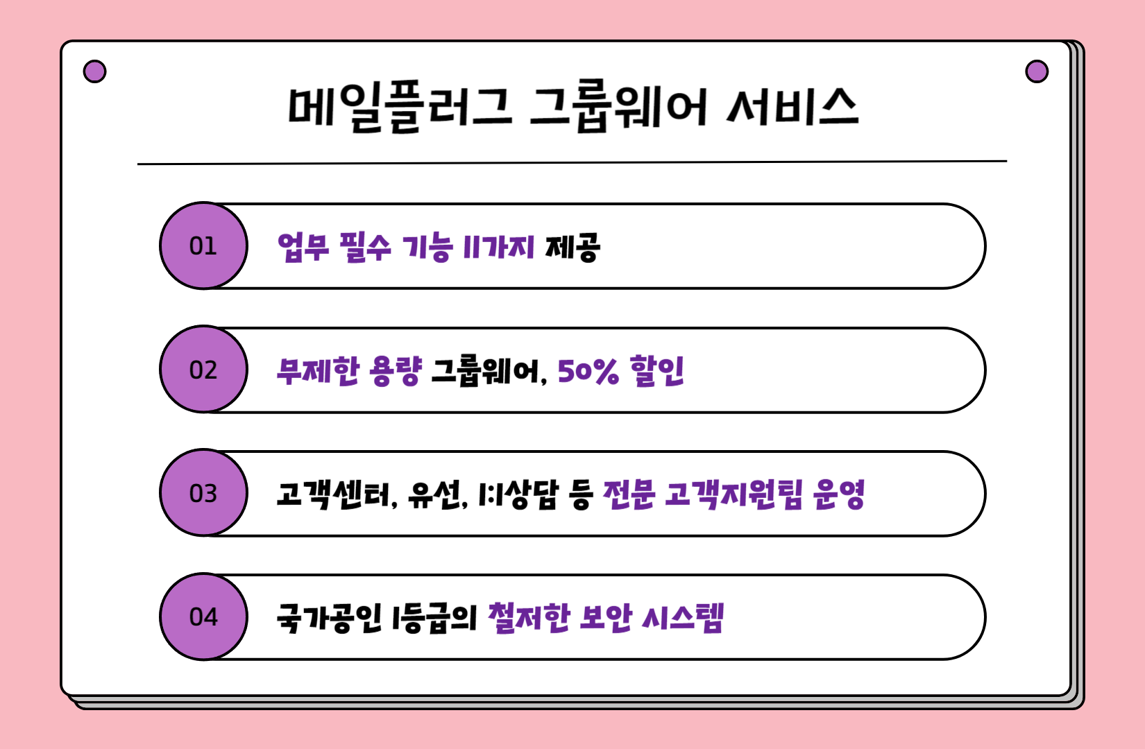 메일플러그 그룹웨어에 대한 정보는 아래 링크를 클릭해 주시면 됩니다.