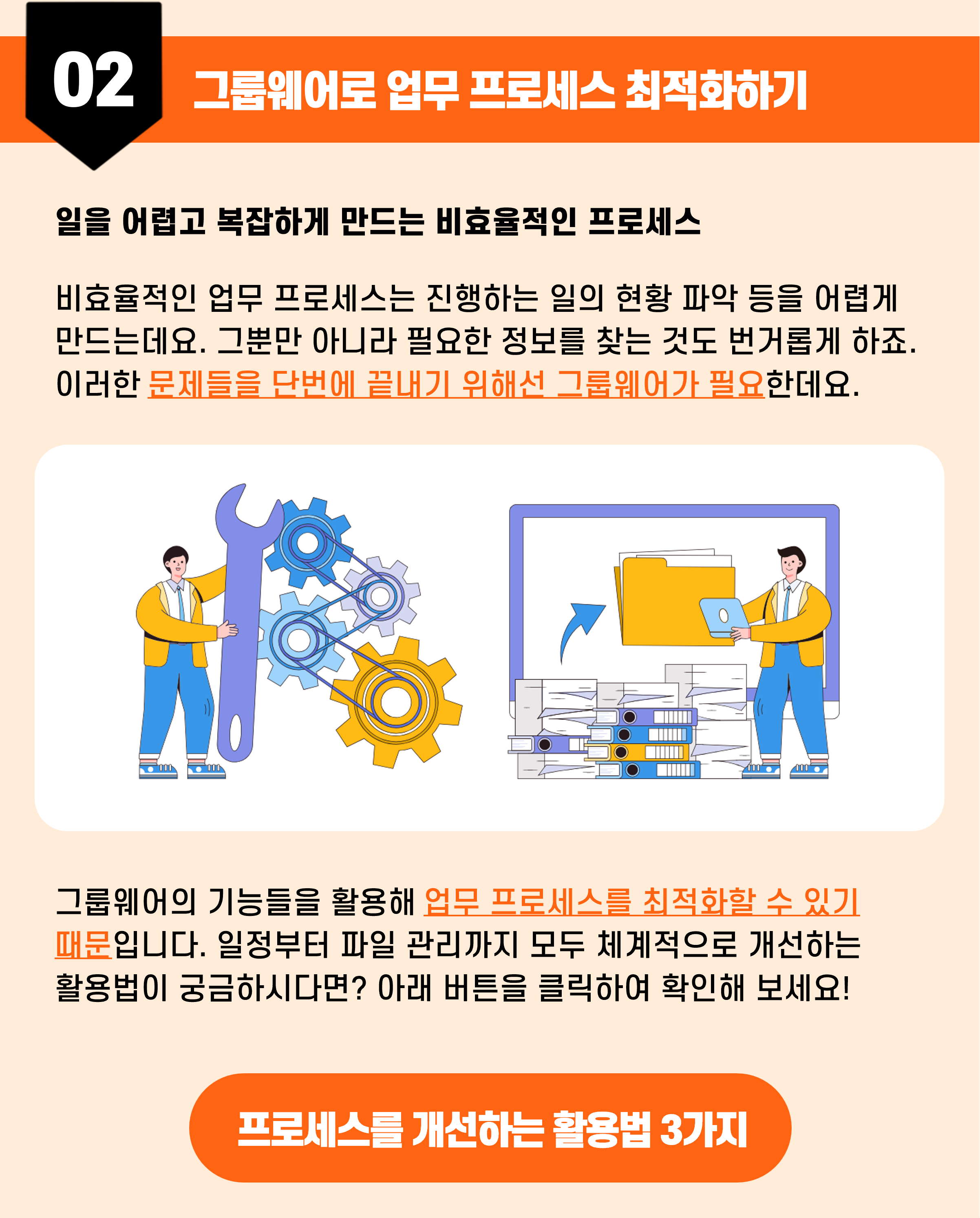 이러한 문제들을 단번에 끝내기 위해선 그룹웨어가 필요한데요.