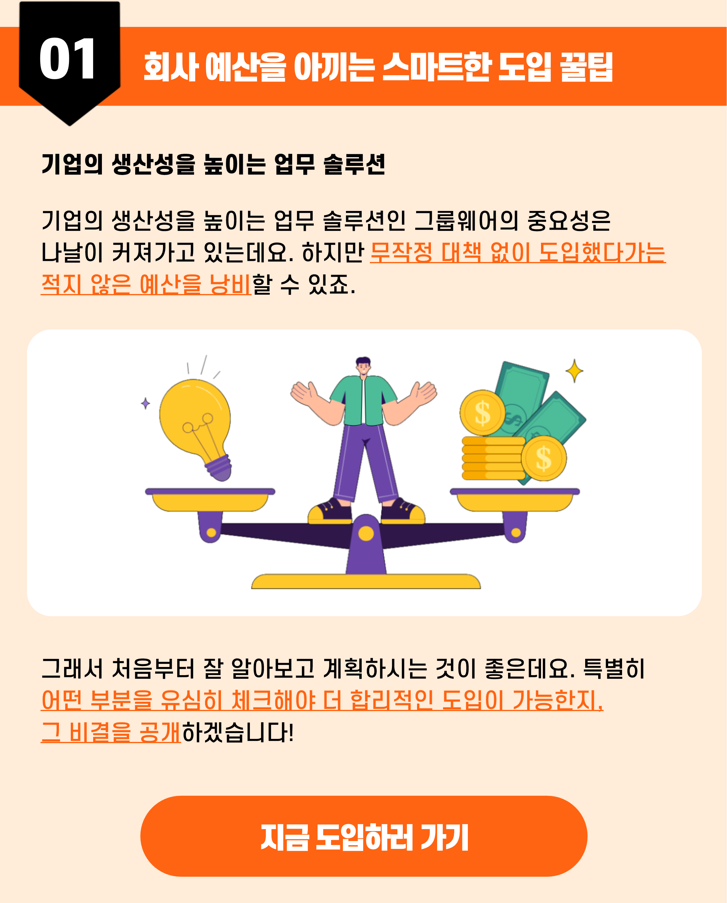 1. 낭비 없이 업무 솔루션을 도입하는 비결은?