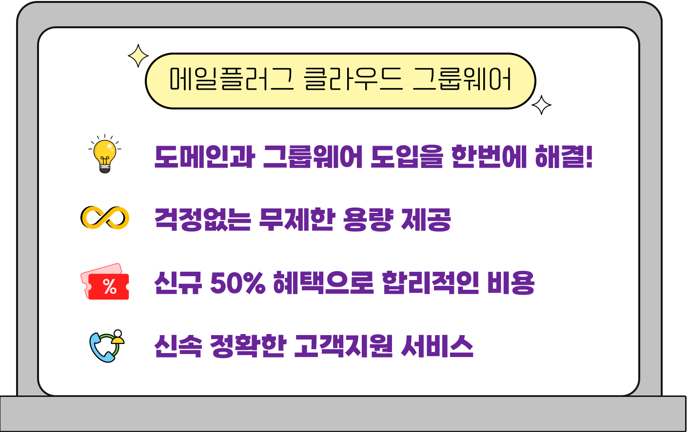 메일플러그에서는 도메인과 그룹웨어 서비스 모두 제공하고 있어
