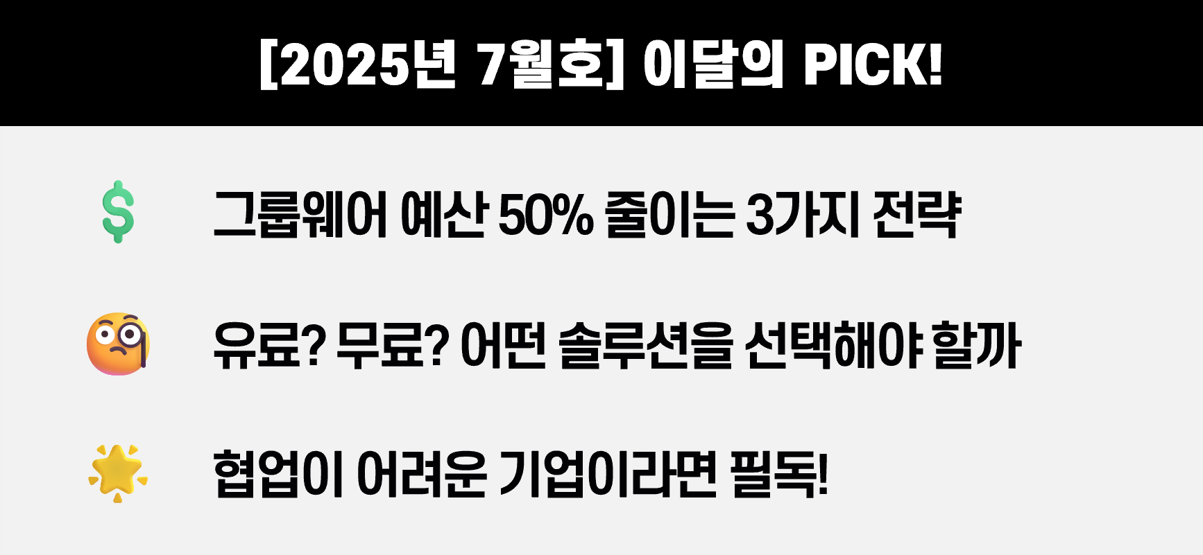 | [2025년 8월호] 회사랑 잘 맞는 그룹웨어, 어떻게 찾을까? (0) | 2025.08.06 |