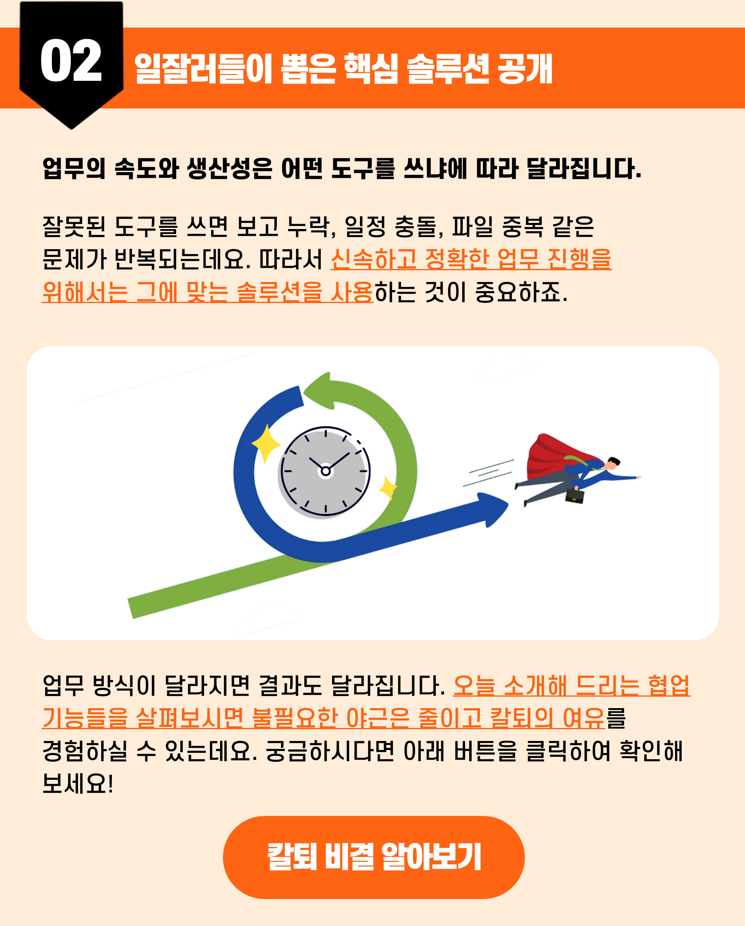 불필요한 야근은 줄이고, 칼퇴의 여유를 경험하실 수 있는데요.