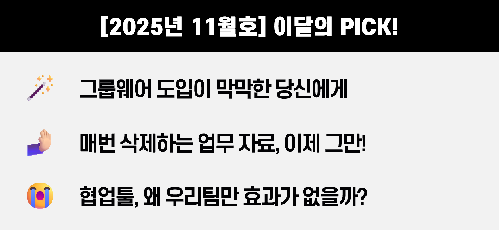 | [2025년 8월호] 회사랑 잘 맞는 그룹웨어, 어떻게 찾을까? (0) | 2025.08.06 |