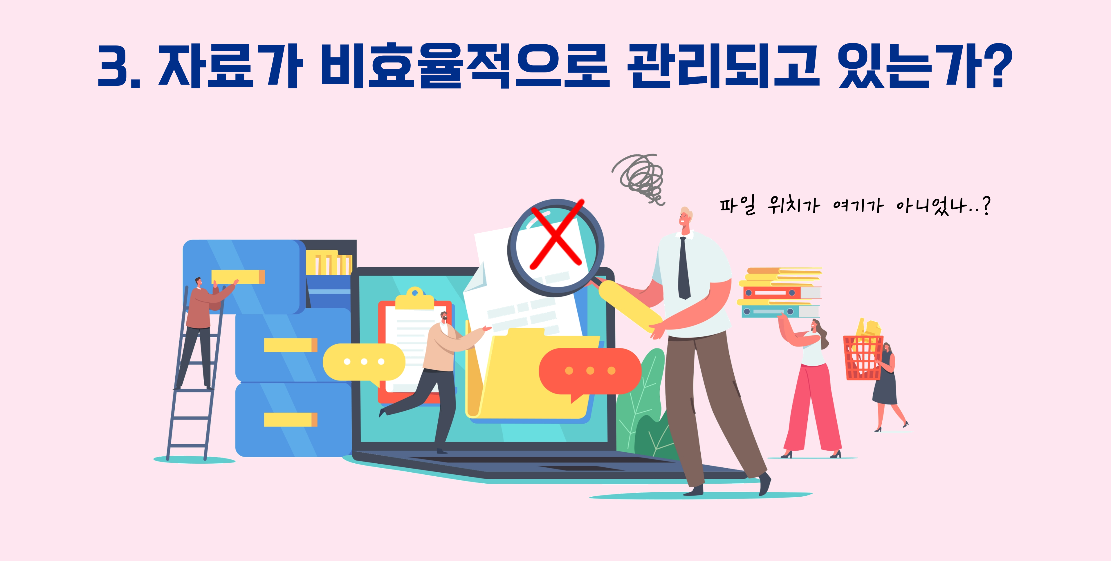 이런 환경에서는 필요한 자료를 찾는 데 시간이 오래 걸릴 수밖에 없죠.