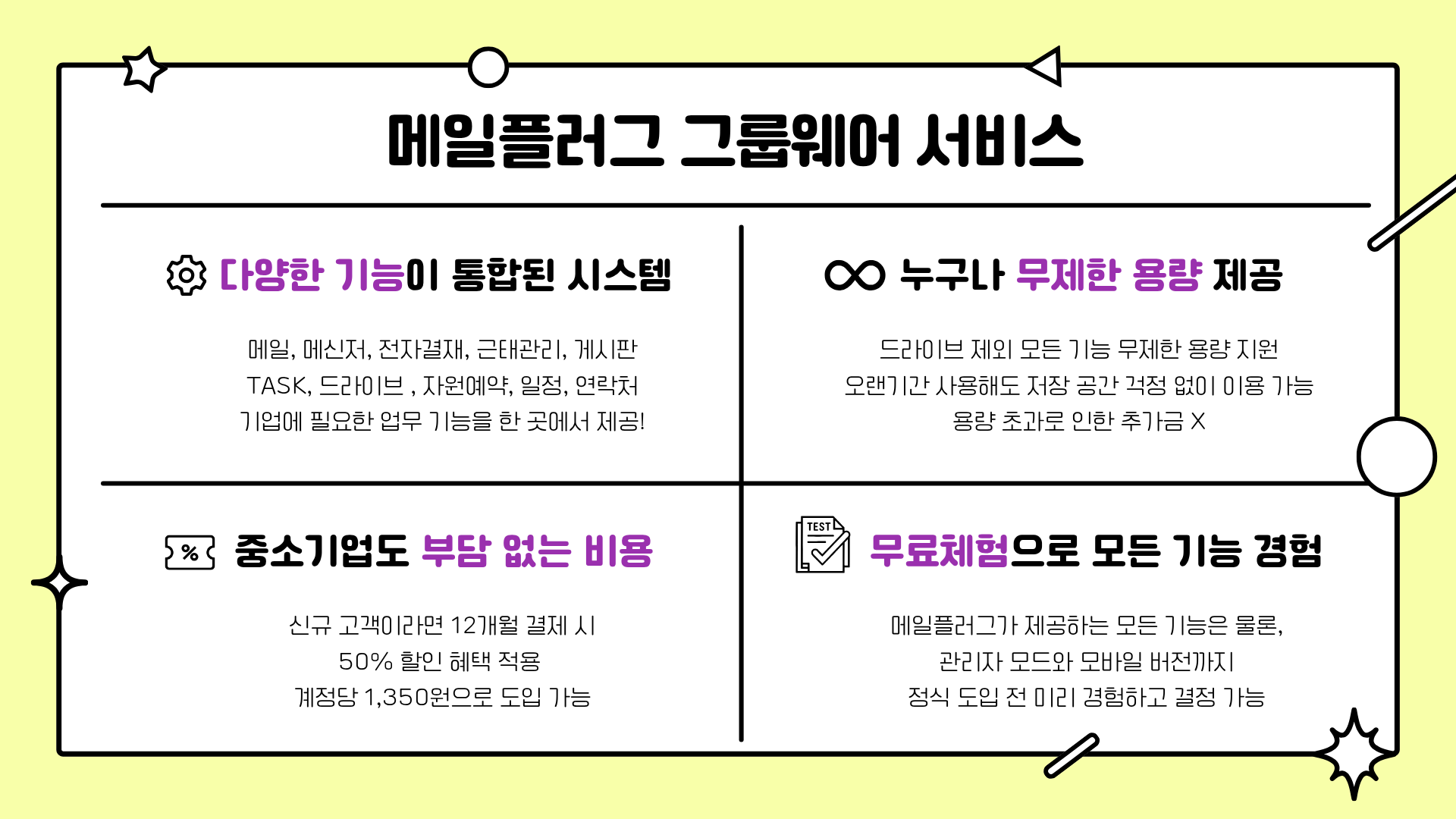 메일플러그 그룹웨어 시스템은 다양한 기능이 한 군데 모여 있기 때문에